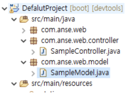 - com.anse.web.model 패키지 생성 후 SampleModel.java 생성