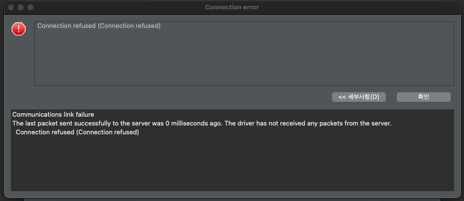 mySql 이 정상적으로 안떠있나보다 하고 생각해서 mySql 재기동.